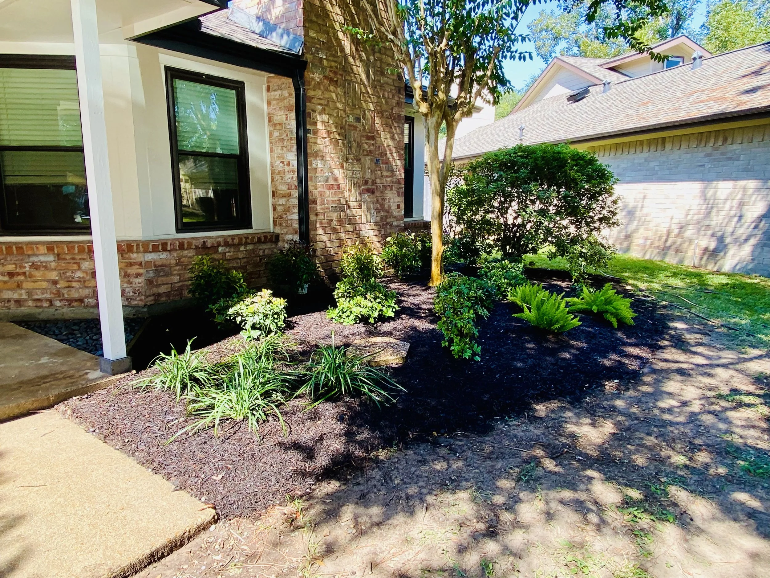 There’s nothing more rewarding than bringing fresh life to a front yard that’s lost its curb appeal over time. This Woodstream home had solid bones—a lovely brick exterior and mature trees—but the original landscaping had become tired, root-bound, and uneven. Our goal: create a lush, balanced design that framed the house beautifully while staying low-maintenance for the homeowners.